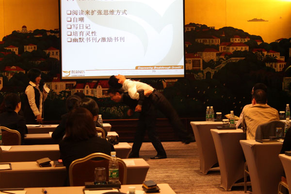課程氛圍輕松,老師通過引導(dǎo)、測試等方法,找出大家各自的壓力來源及特質(zhì),對不同的壓力類型進行針對性的輔導(dǎo)。在“講出你心中的那句話”環(huán)節(jié)中,各位平時精干的管理者們,自然的流露出真性情,真正放下或正確疏解了自己的壓力,為明天的工作生活注入了更多的輕松與活力。